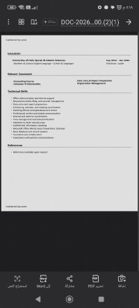 أنا سوداني باحث عن وظيفة مدخل بيانات، أجيد العمل على الحاسب الآلي وادخال البيانات بدقة وسرعة. المهارات اجادة استخدام الحاسب الآلي العمل على برامج Microsoft Word وExcel تنظيم البيانات والملفات الالتزام والانضباط في العمل المؤهل والخبرة بكالوريوس لغة انجليزية خبرة ادارية سابقة واشراف عمال القدرة على التعامل مع التقارير والمراسلات نوع العمل دوام كامل