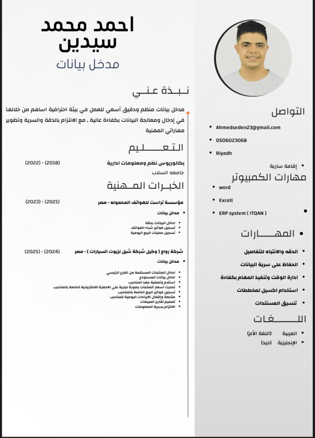 مدخل بيانات خبرة في ادخال البيانات بدقة وسرعة. اجادة العمل على الكمبيوتر وبرامج Microsoft Excel وWord اجادة العمل على برامج ERP System. تنظيم الملفات وتحديث البيانات باستمرار الالتزام بالمواعيد وتحمل ضغط العمل