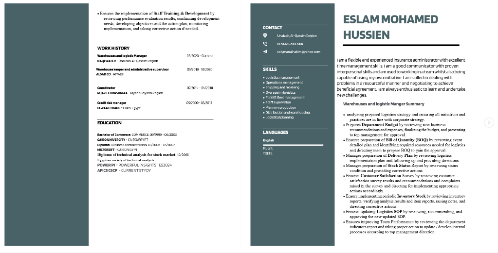 Logistics management - Operations management - Shipping and receiving - Overseeing logistics - Forklift fleet management - Staff supervision - Planning production - Distribution and warehousing - Logistical planning