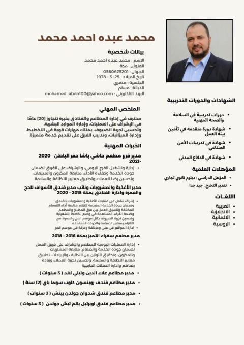 طلب عمل مدير مطاعم في مجال الفنادق والاعاشة