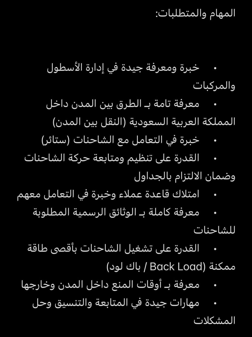 اعلان وظيفة مشرف لوجستيك / مشرف حركة الموقع الرياض (حي الريان) القطاع شركة لوجستية متخصصة في الأغذية والمرطبات تعلن شركة لوجستية رائدة في مجال الأغذية والمرطبات عن حاجتها الى مشرف لوجستيك / مشرف حركة للعمل في مدينة الرياض