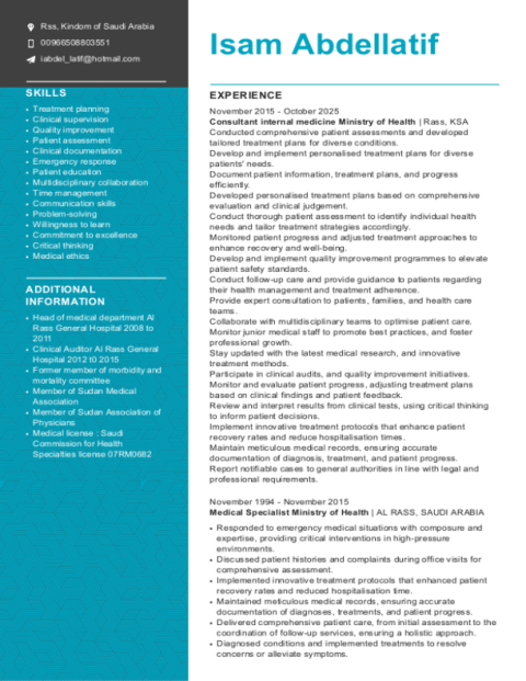 I PROFILE Consultant Internal Medicine - More than 15 years experience MOH (KSA) MRCP (UK) MRCP (London) Master in clinical medicine (Khartoum University) First and second parts Arab Board - Diploma in primary care diabetes PDDM (Warwick University) UK Key Skills Evidence - based practice - Acute and chronic disease management. Multi - disciplinary team collaboration and team leader ship