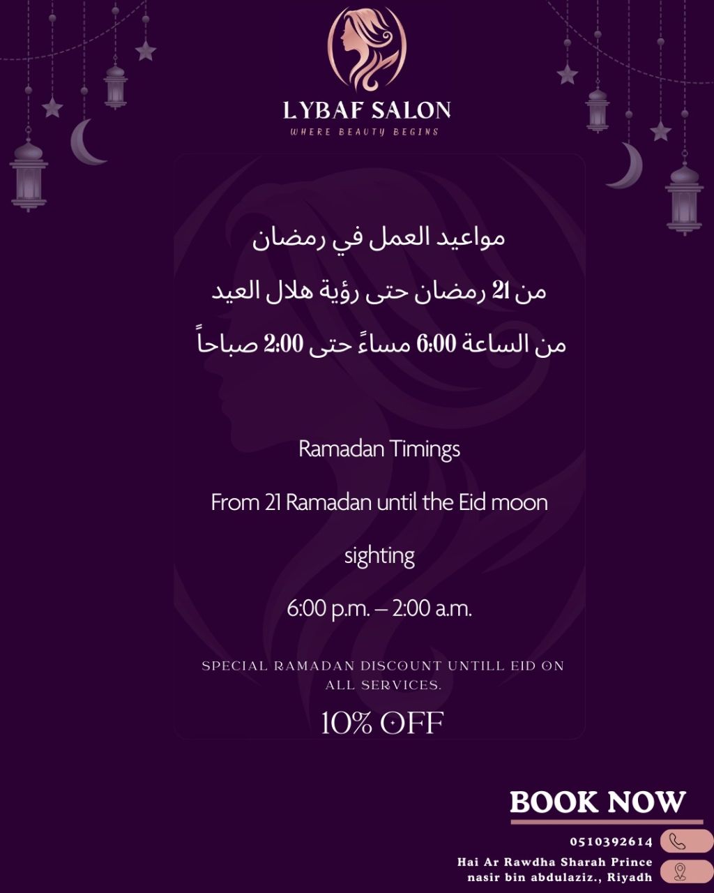 صالون نسائي في حي الروضة بحاجة الى كوافيرة شامله ذو خبرة شرط تكون لديها إقامة سارية وكرت صحي ومرتبه وحسنة المظهر وذو أخلاق وسيرة حسنة للجادين
