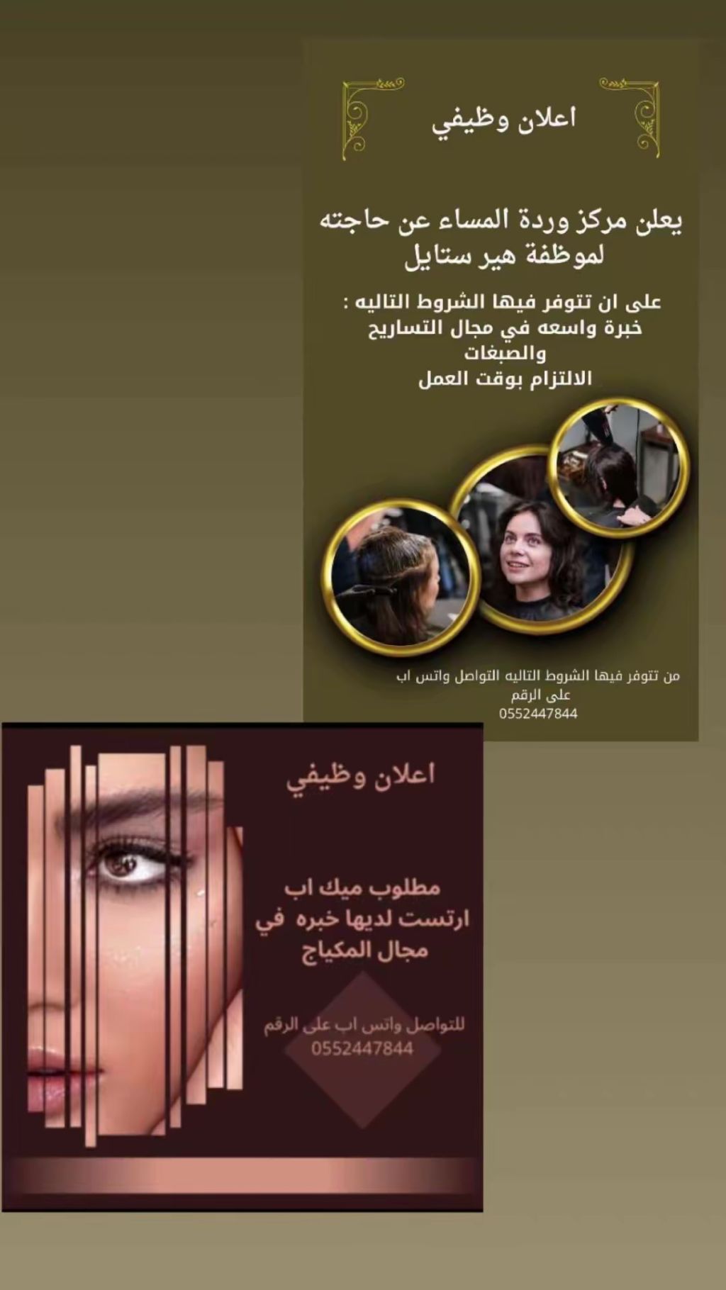 مطلوب هير ستايل (ممتازة في التساريح والصبغات وكل ما يخص الشعر) وارتست / مكياج / لصالون تجميل غرب الرياض مخرج 26 الدائري الجنوبي