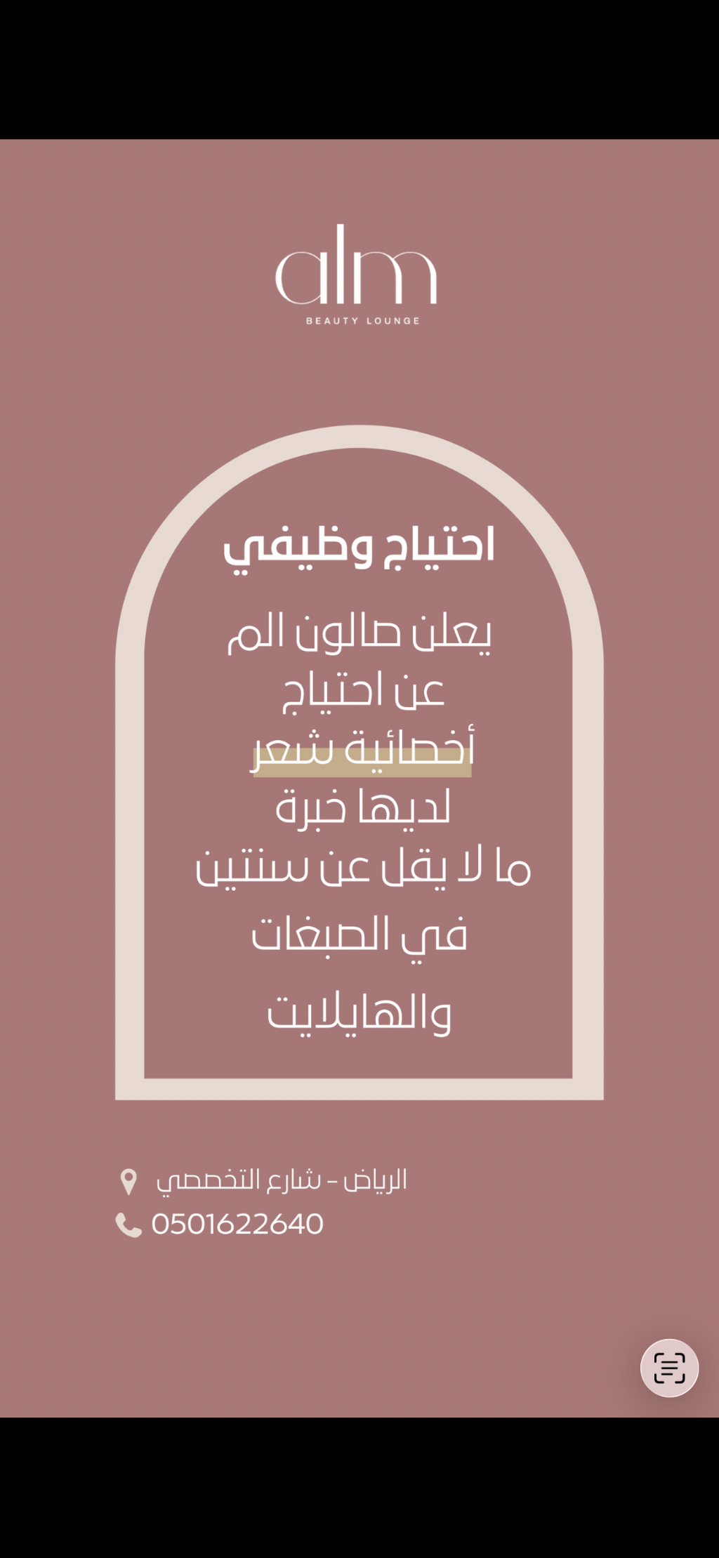 مطلوب أخصائية شعر ذات خبرة لا تقل عن سنتين، شاطرة في صبغات الشعر والهايلايت. العمل في الرياض الرحمانية ولدينا سكن
