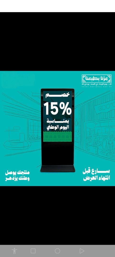 شاشات اعلانية دعائية استاند 43 بوصة فقط ب 4999 ريال، نشحن ونركب ونبرمج لجميع محافظات المملكة البحرين