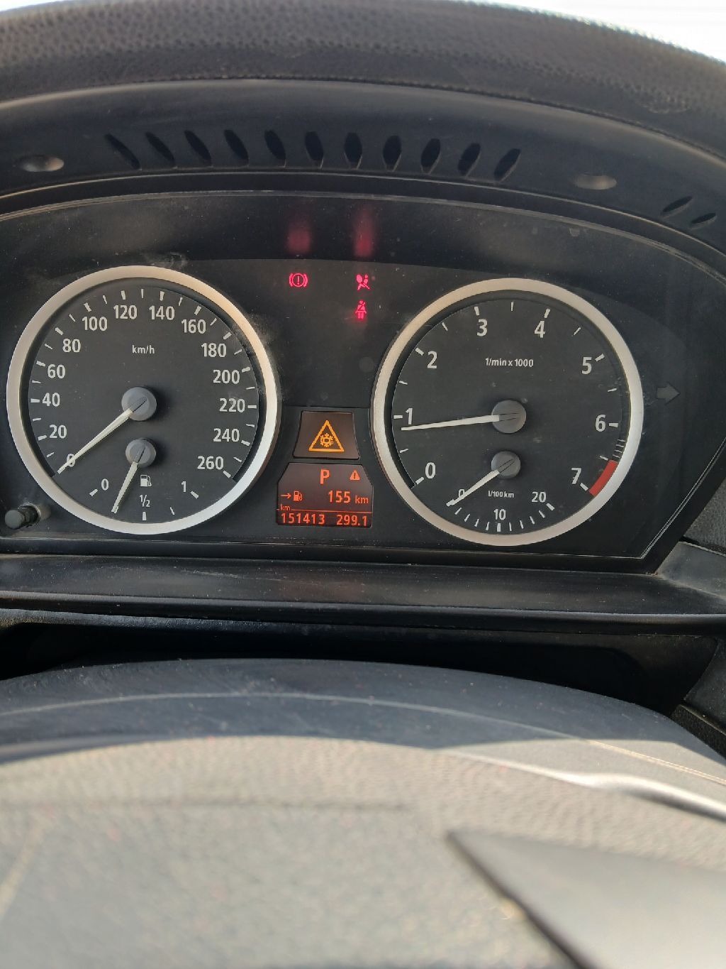 Mileage: 153,666 km only, genuine and low mileage, documented in the vehicle report. Engine: 6-cylinder, automatic transmission, rear-wheel drive. Features: leather, iDrive screen, sensors, air conditioning. Condition and documents: recent periodic inspection (done two days ago), registration valid and ready for immediate transfer. Mechanical condition: transmission and engine in excellent condition. Notes: sold as-is, dashboard warnings for airbag and brake light illuminated due to seat sensor.