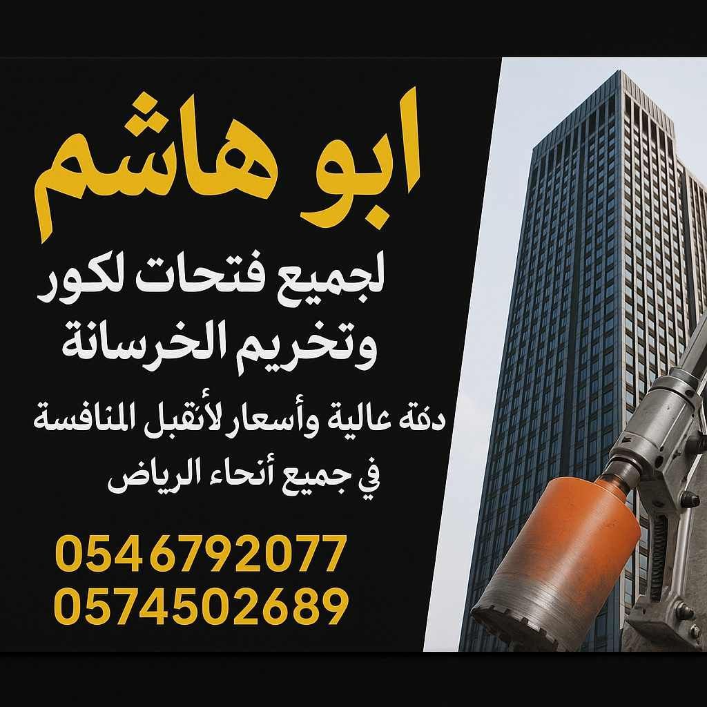 تخريم خرسانة ومناهل فتحات دائريه ومربعه دقة عالية خبرة كبيرة وأسعار لا تقبل المنافسه اتصل نصلك أينما كنت داخل الرياض