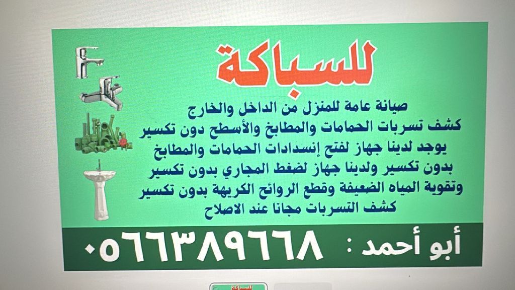 عروض مناسبة ترضي الكل سوري الجنسية كشف تسريبات المياه الحمامات والمطابخ بدون تكسير وتقوية المياه الحمامات والمطابخ وقطع الروائح الكرية وفتح الانسداد الحمامات والمطابخ بدون تكسير لدينا جهاز لضغط المجاري وصيانة عامة للمنزل من الداخل والخارج وكشف التسريبات بجميع أنواعها وطرق علاجها