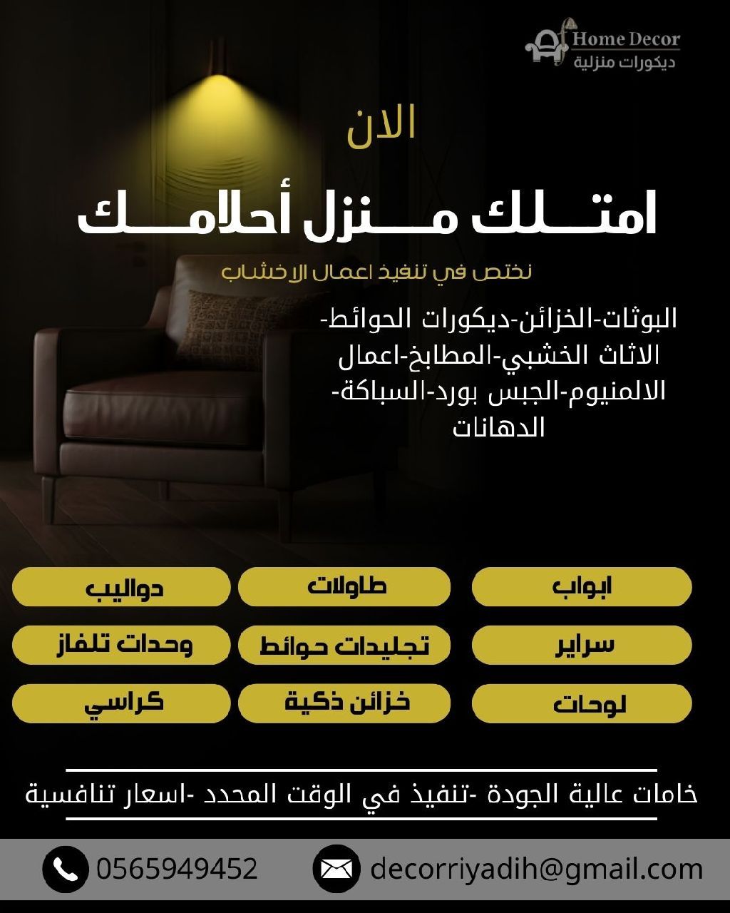 تصنيع تركيب مكاتب بجميع أنواعها تركيب أثاث صيني + مستورد + أبواب wpc تصنيع تركيب غرف نوم ودواليب فك وتركيب تصنيع باحترافية عالية خبرة + دقة + سرعة شغل نظيف بدون أخطاء أو تلف نوصل لكل أحياء الرياض لا تضيع وقتك خلك مرتاح وخلي الشغل علينا تركيب - أثاث تركيب - مكاتب أثاث - صيني تركيب - ايكيا نجار - الرياض خدمات - منزلية فك - وتركيب - تصنيع أثاث