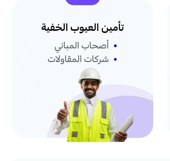 تقديم طلب تأمين ضد العيوب الخفيه للمباني عن طريق شركة التعاونية مدة التأمين 10 سنوات من تاريخ انتهاء الأعمال انجاز فوري بدون حضور التواصل عن طريق الواتساب وارسال الملفات والبيانات المطلوبه تقديم الطلب ومتابعته لحين السداد واصدار الوثيقة، تقديم طلب زيارة فاحص فني