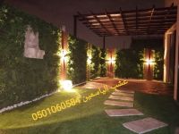 0501060584 تنسيق حدائق الياسمين. عشب صناعي أرضي وجداري وتاكسيات جدارية وتجهيز ملاعب وعشب طبيعي وأحواض زراعية