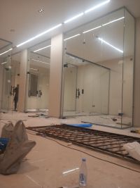 زجاج سيكوريت وتفصيل مكاتب ووجهات حق محلات ومرايات معتق وعادي وشاورات