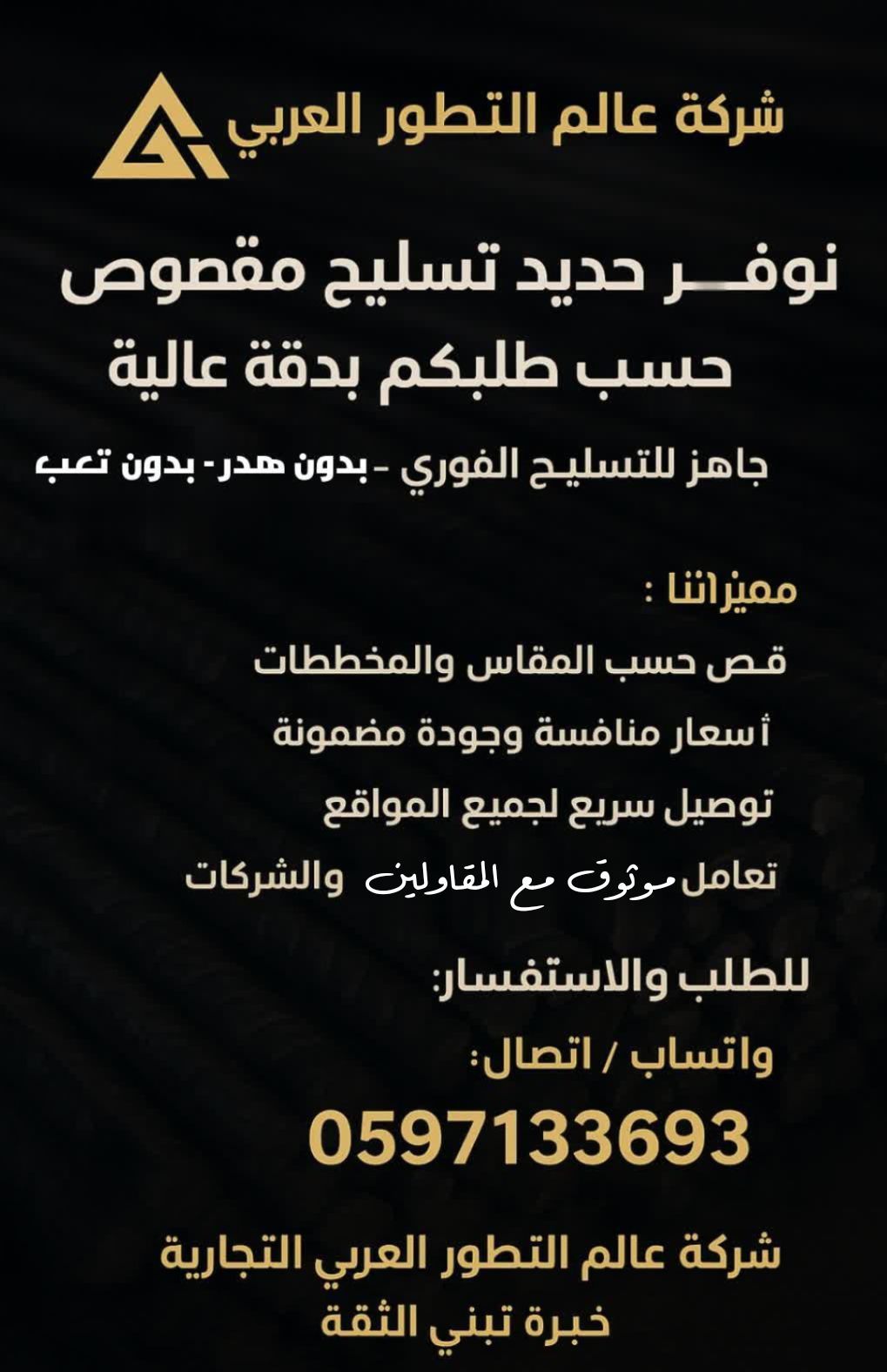 يتوفر لدينا في شركة عالم التطور العربي التجارية حديد تسليح نظامي ومقصوص