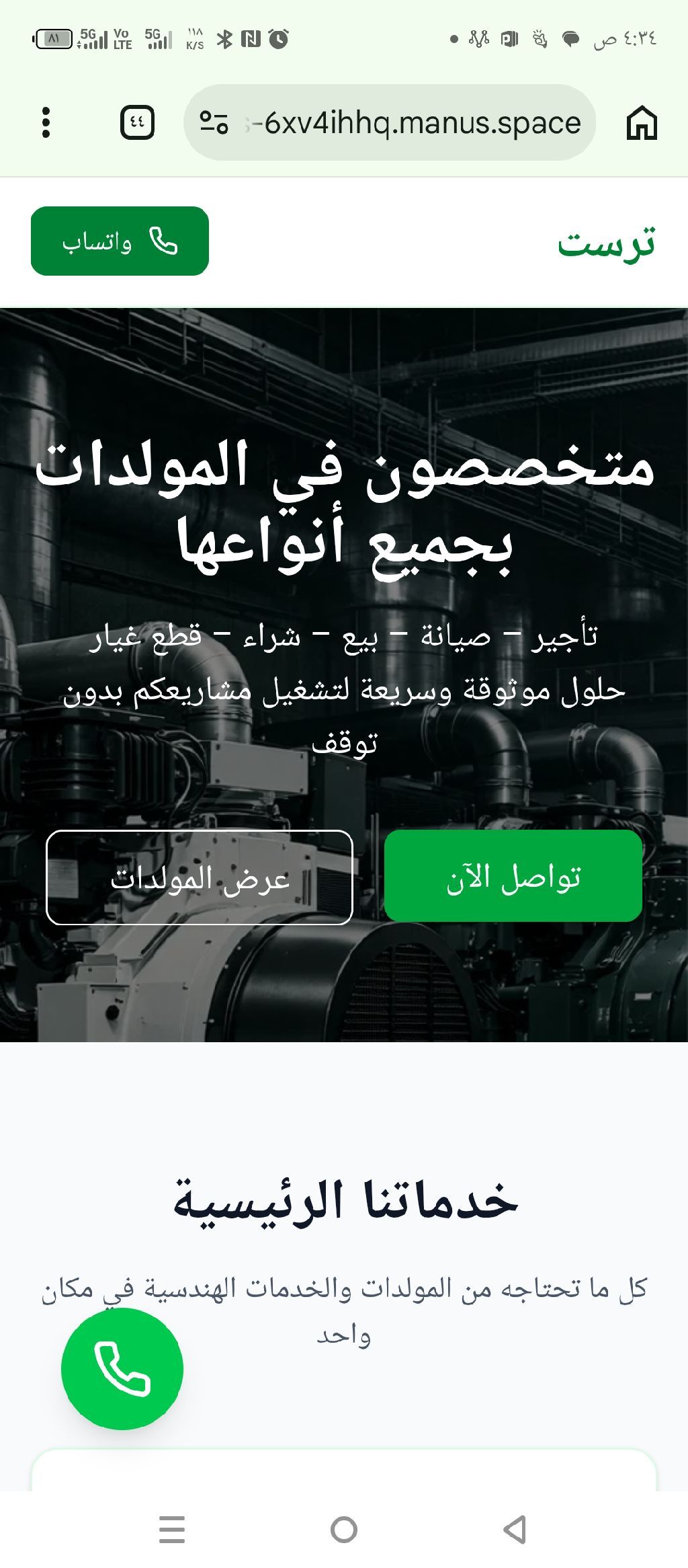 ابحث عن مستثمر جاد للدخول في شراكة لتأسيس مؤسسة متخصصة في تأجير مولدات الكهرباء وبيع قطع الغيار الخاصة بها أنا مهندس مختص في مجال المولدات ومحركات الديزل، ولدي خبرة تتجاوز 15 عاما في تشغيل وصيانة المولدات إدارة المشاريع والخدمات الفنية توريد وتركيب قطع الغيار (خصوصا كومنز) بناء علاقات مع موردين وعملاء في السوق المشروع قائم على دراسة وخبرة عملية بالسوق