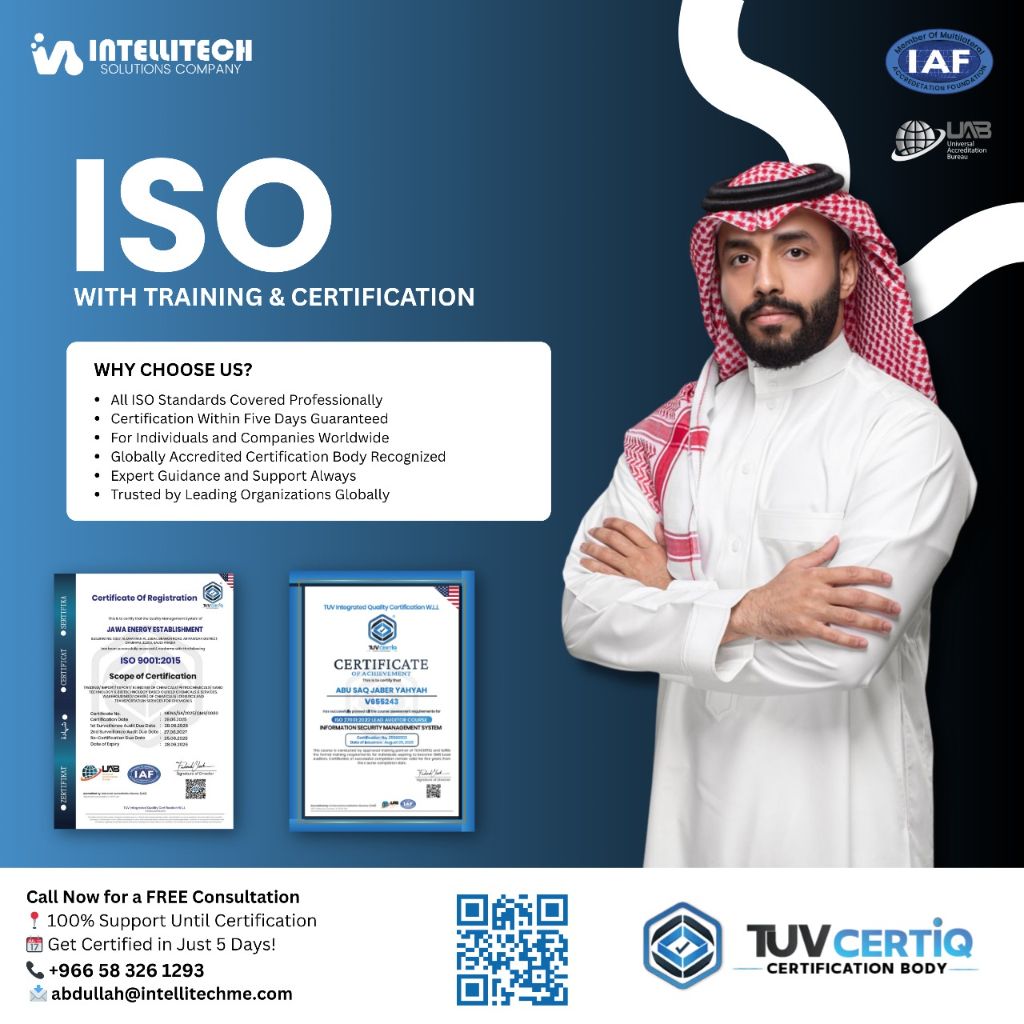 Ready to elevate your business credibility Choose INTELLECTECH SOLUTIONS for professional ISO Training & Certification Why Choose Us 100% Coverage We cover each and every standard of ISO professionally, ensuring comprehensive expertise for your organization. Rapid Results Get Certification Within Five Days Guaranteed and achieve compliance fast. Global Recognition we are a Globally Accredited