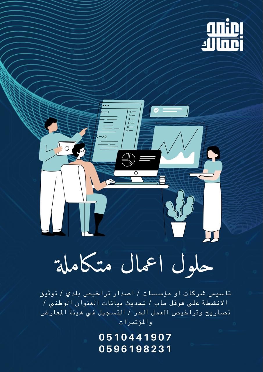 Company and establishment formation, issuance of permits and licenses, Google Maps account verification, registration with the General Authority for Exhibitions and Conferences, data updates and national address modification, freelance certificate issuance, and trade name reservation