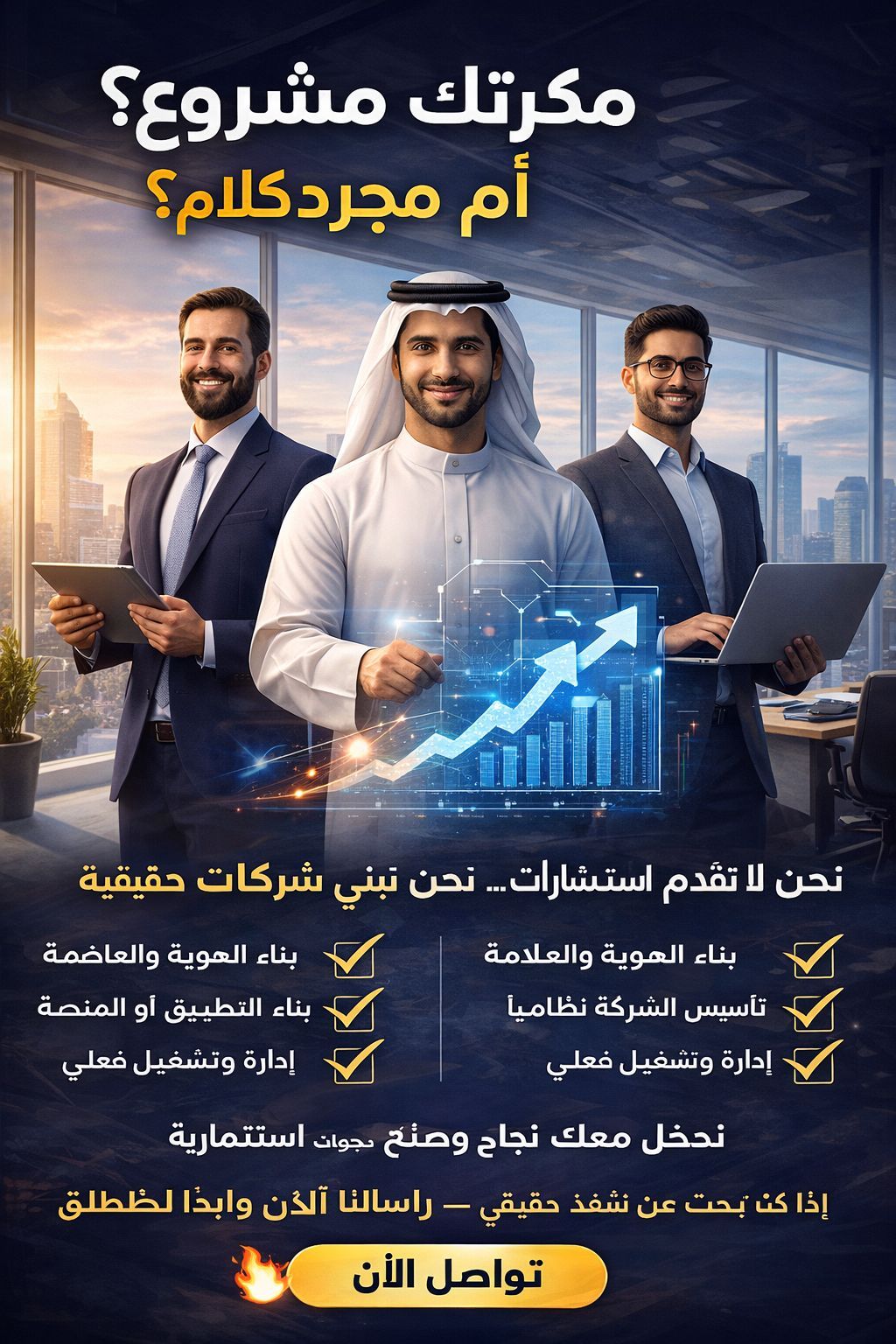 استشارة مجانية لرواد الأعمال والشركات الناشئة عندك فكرة مشروع أطلقت شركتك وتبحث عن توجيه واضح نقدم لك جلسة استشارية مجانية تساعدك على تقييم فكرتك وتحليل السوق بناء نموذج عمل واضح ومربح تحديد مصادر الدخل وخطة النمو تجنب الأخطاء المكلفة في البداية الاستعداد لجولات الاستثمار لا تضيع وقتك في التخمين ابدأ بخطة واضحة وخطوة مدروسة احجز استشارتك الآن المقاعد محدودة