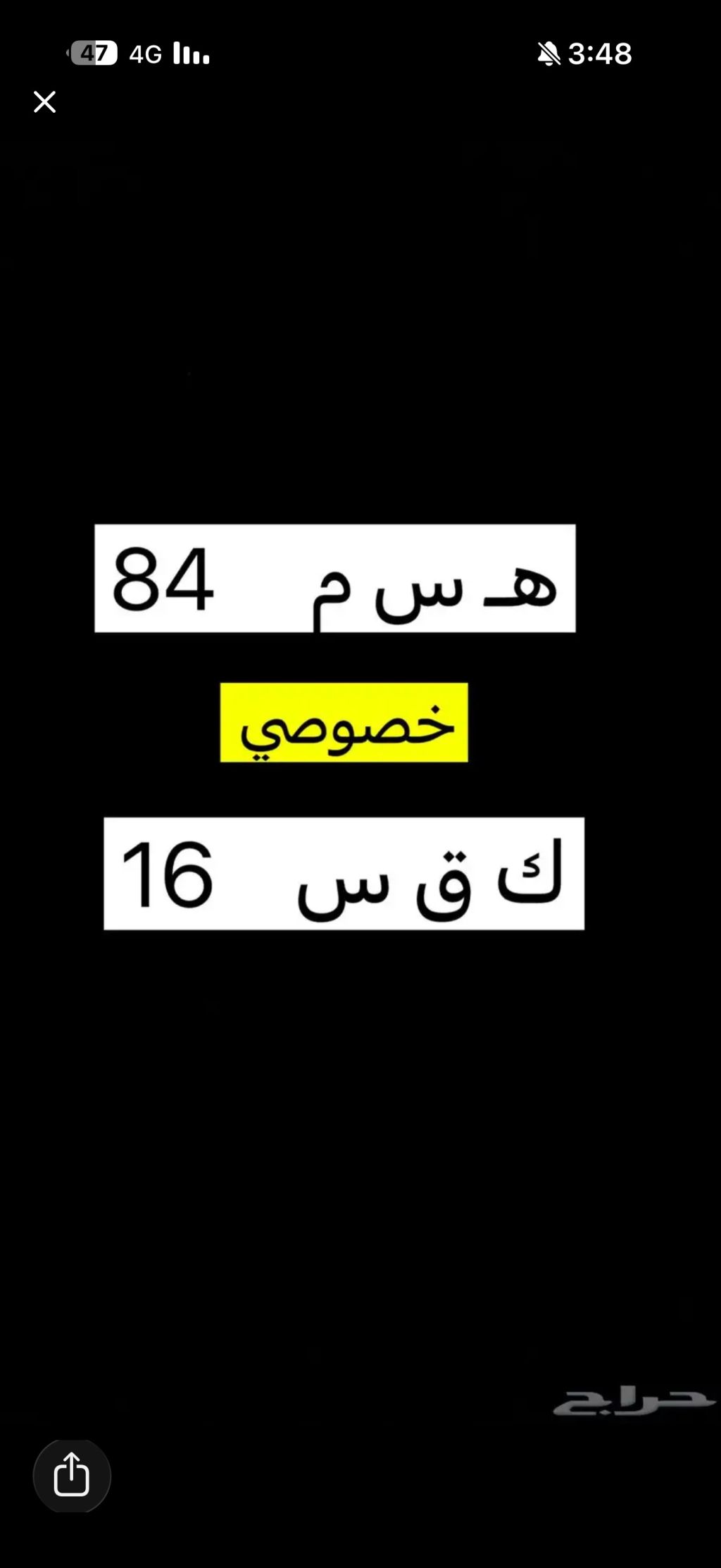 لوحة مميزه للبيع خصوصي البيع لأعلى سومه رقم ( ك ق س 16)