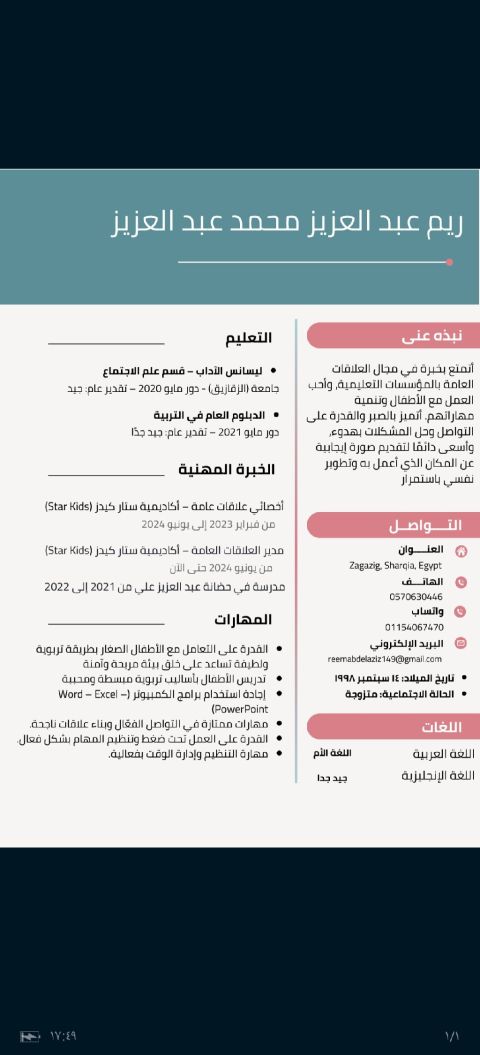 ابحث عن عمل في حضانة مدرسية تكون في الرياض الشمال أو استضافة الاطفال ببيتي بسعر مناسب للأم أنا تونسية موجودة في الرياض حي الندى