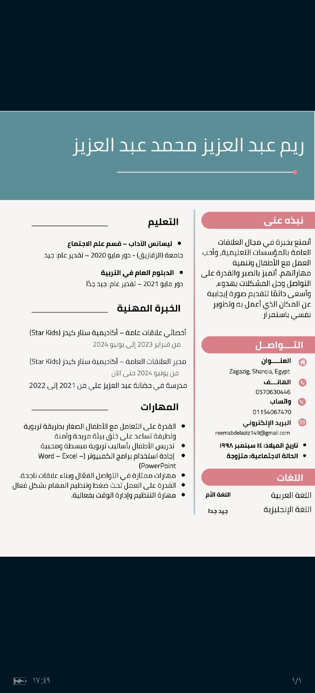 ابحث عن عمل لزوجتي سبق لها العمل في مجال الحضانة خبرة 4 سنوات