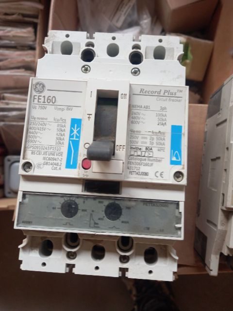 قواطع كهرباء السعر 150 ريال قاطع دارة (Circuit Breaker) من نوع GE Record Plus FE 160. النوع FE160 الشركة المصنعة GE التيار المقنن (In) 80 أمبير عند 40 درجة مئوية الجهد المقنن (Ui) 750 فولت رقم الكتالوج FEN306F160JF