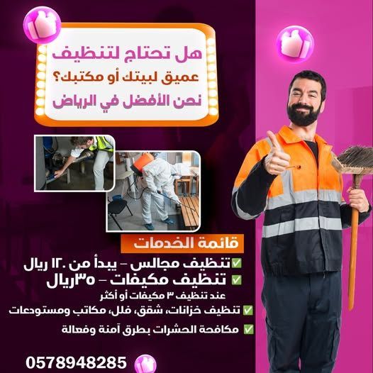تنظيف مجالس وسجاد وكنب وشقق وتنظيف مكيفات وتنظيف خزانات ومكافحة حشرات