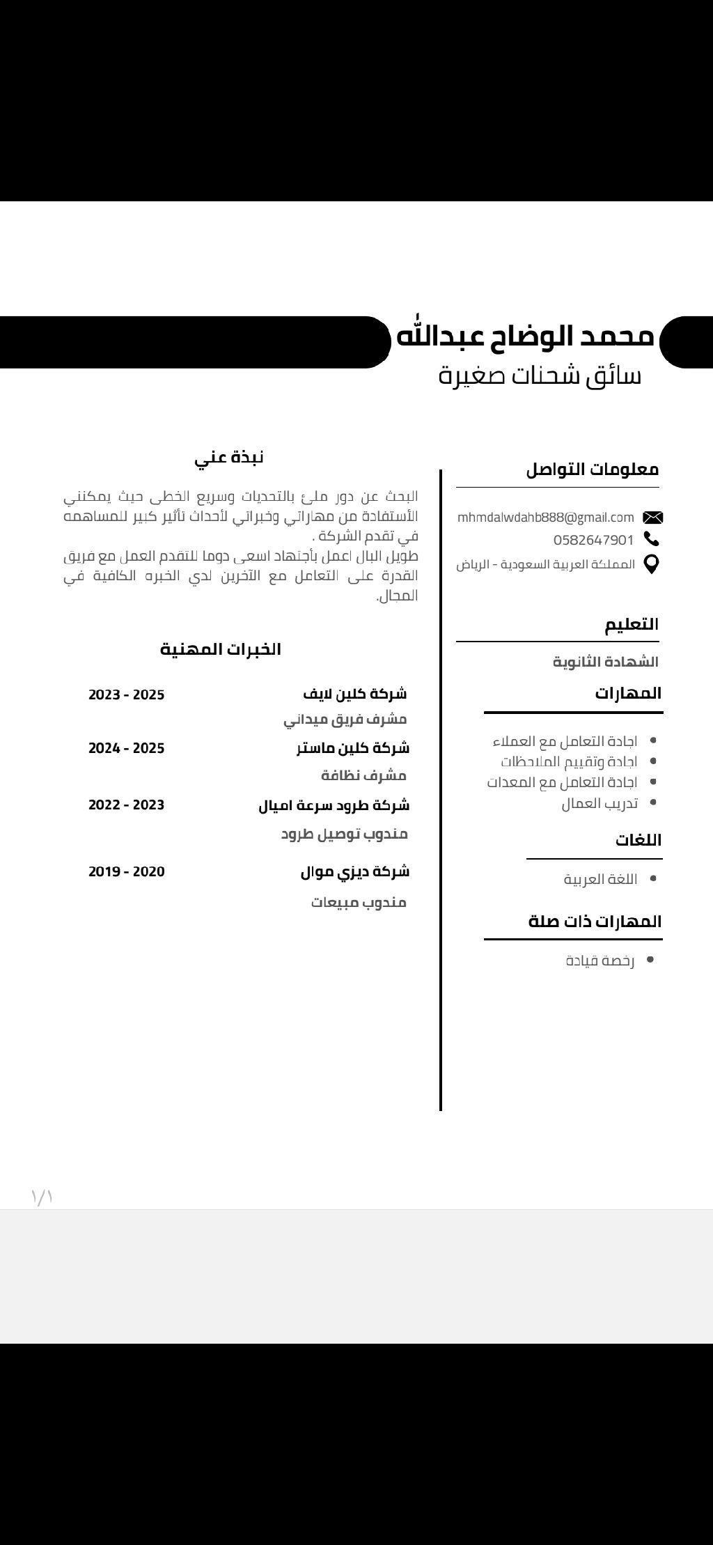 مشرف فريق ميداني للنظافة اشتغلت في مجال التنظيف وأعرف طريقة تشغيل جميع المكاين
