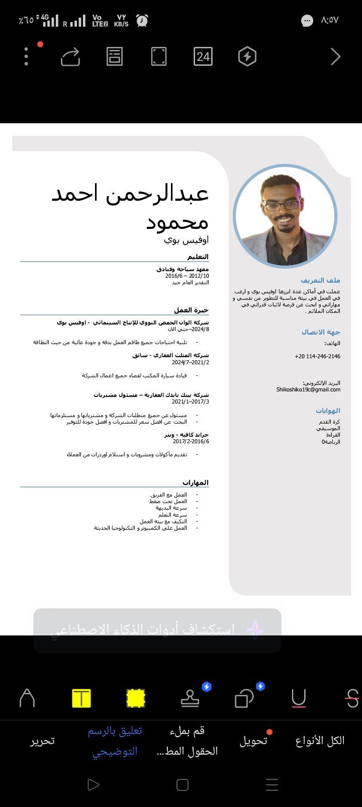 أنا اسمي عبدالرحمن أحمد ابحث عن عمل أوفيس بوي في أي شركة