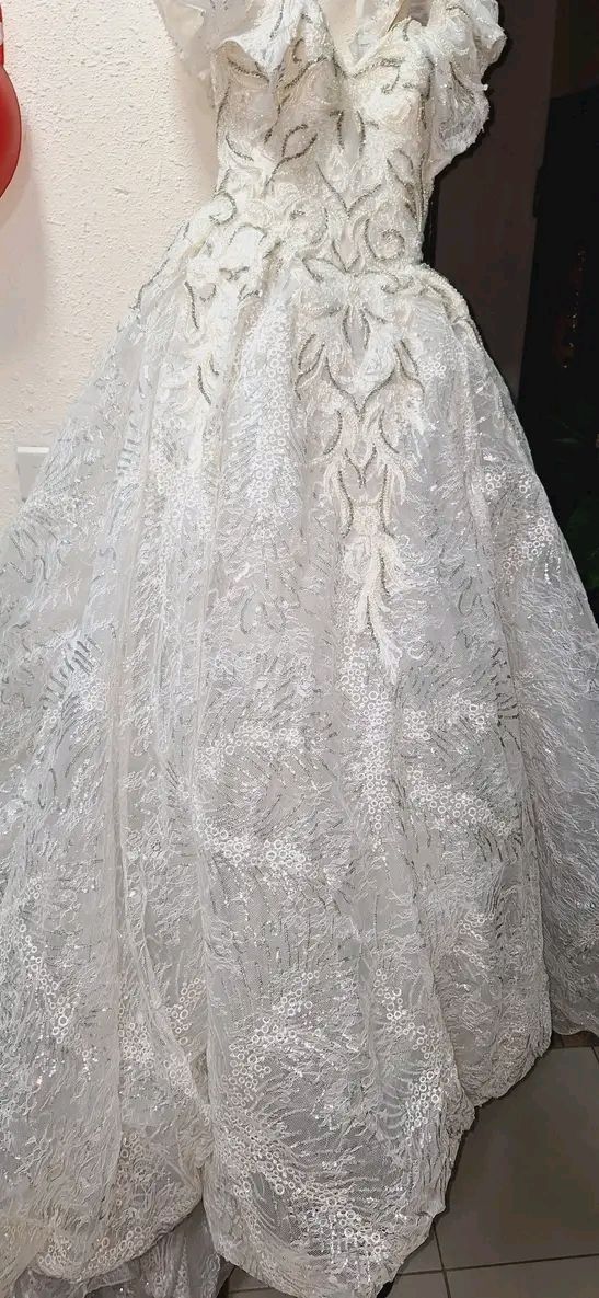 فستان أبيض زفاف مستعملة البيع مع طرحه