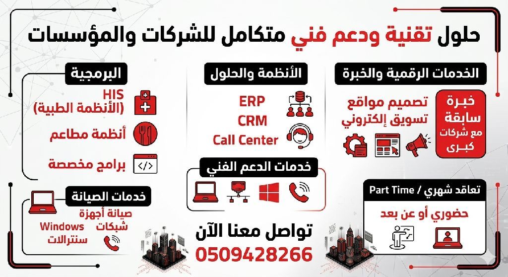 Professional IT services and technology solutions for businesses, available on a monthly, part time, or on - demand basis, onsite or remotely. Services include computer maintenance, network and WiFi - management, PBX systems, and Windows support. We also implement ERP, CRM, and Call Center systems, plus solutions for healthcare, restaurants, and manufacturing, along with website and custom software