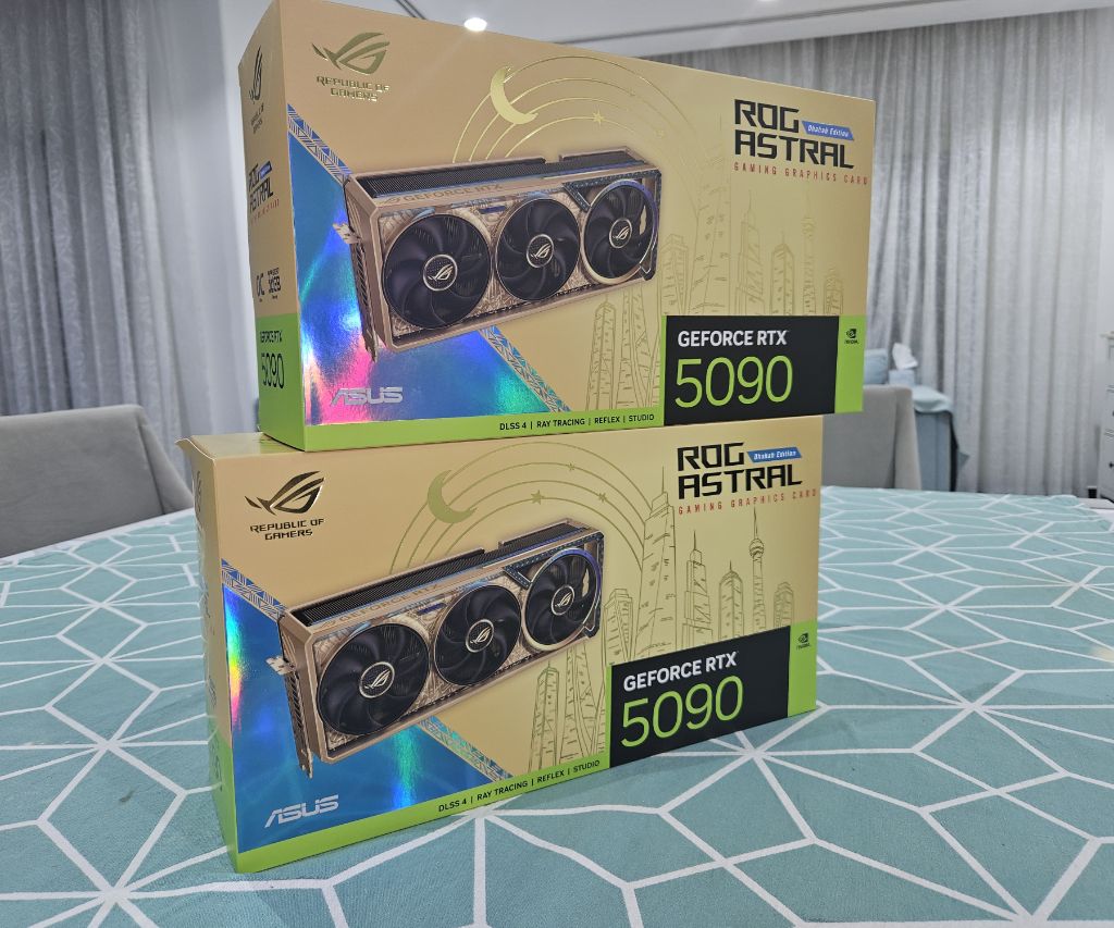 Asus ROG Astral GeForce RTX 5090 Dhahab OC Limited Edition 32GB GDDR 7 ROG Astral GeForce RTX 5090 Dhahab Edition This is a Limited متوفر 4 كروت السعر 18000 ريال