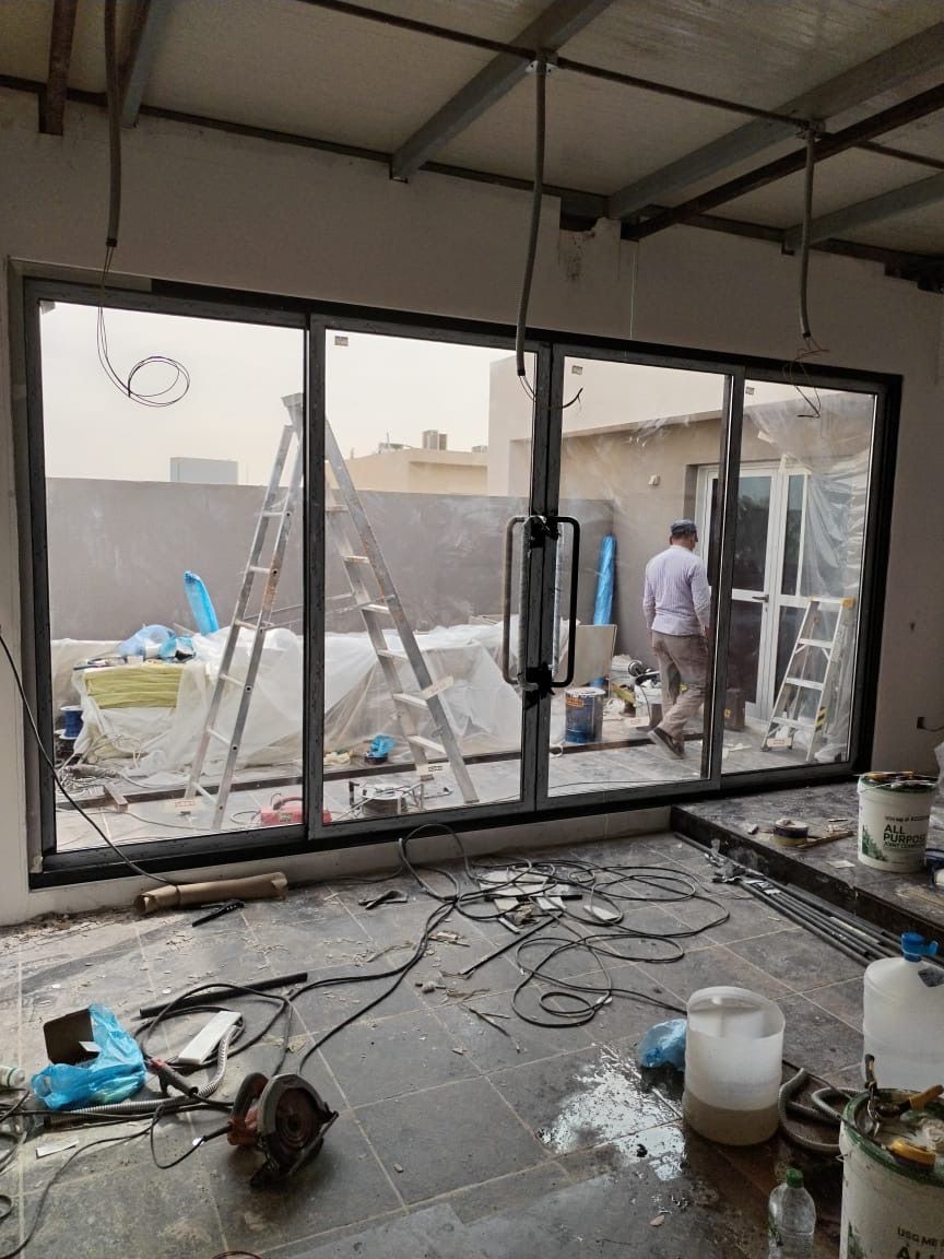 تنفيذ جميع أعمال ألومينيوم وزجاج واجهات كارتانول واجهات ستراكشر أبواب ونوافذ شترات كهربائية ويدوية شاورات صيانة