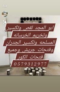 يوجد لدي كور فتحات الخرسانة المكان الرياض فتحات تكيف وشفاط وفتحات الصرفه الصحي وفتحات الفاير وفتحات الجريش وتكسير الجدران وتوريد العماله الرقم