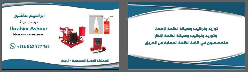 فني أمن وسلامه الاسم إبراهيم السن 26 سنة لدى رخصة وإقامة واشتغلت في شركة مقاولات مندوب مشتريات تركيب جميع أنواع نظام الانذار في الحريق وتشغيل المضخات الاطفاء الحريق عقود صيانة