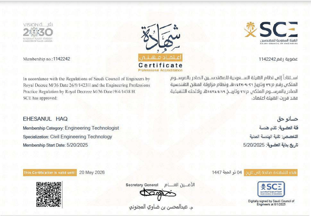 Dear I am Ehesan ul Haq Civil Engineer With 8 + years of experience in QS/ Site Execution in the field of BOQ, Quantity take - off, VO's MR, Invoices, Structural work Block work bar banding Work, plumbing And Finish Work installations for Commercial and Residential buildings. I am a Graduate ( B tech in Civil engineering) with SCE registered membership. I request for an appointment to present