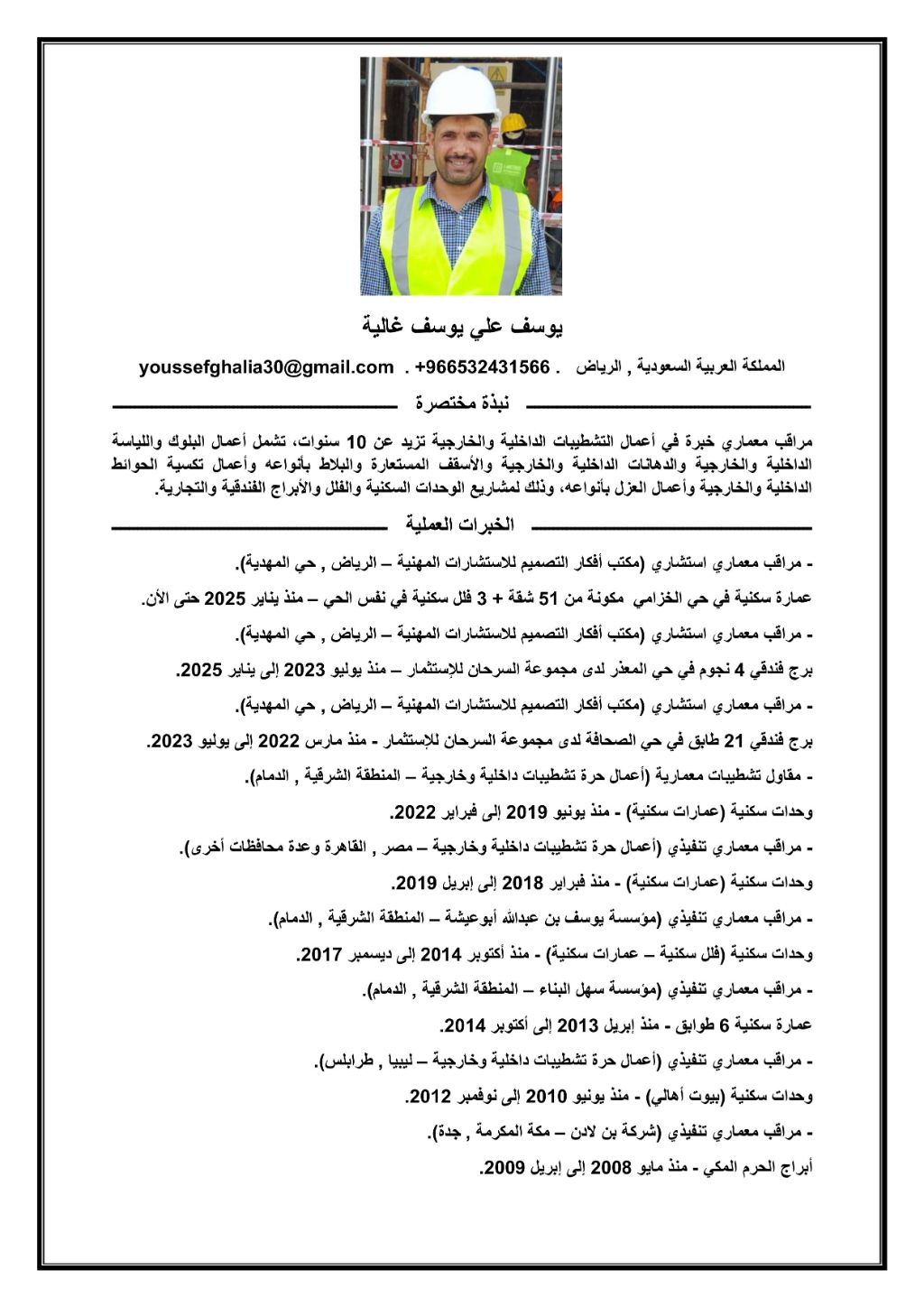 ابحث عن وظيفة) أنا مراقب معماري خبرة 10 سنوات في أعمال التشطيبات الداخلية والخارجية ابحث عن وظيفة للتواصل 0532431566 الخبرات السابقة عملت مراقب معماري استشاري لدي مكتب أفكار التصميم للاستشارات الهندسية الرياض حي المهدية - عملت لدى برج فندقي في حي المعذر لدى مجموعة السرحان للاستثمار - عملت لدي برج فندقي 21 طابق في حي الصحافة لدي مجموعة السرحان للاستثمار - عملت لدى عمارة سكنية في حي الخزامي مكونة من