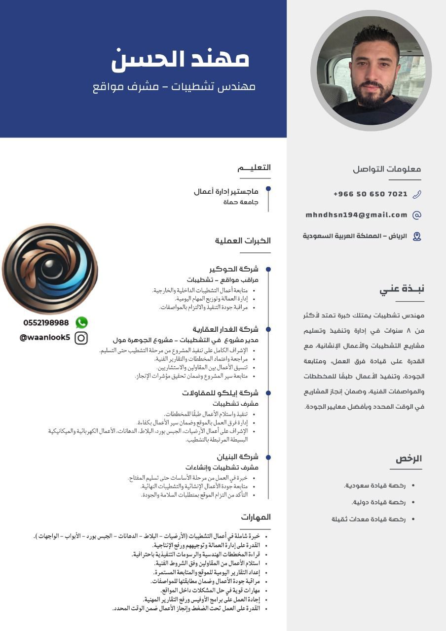 مهندس ومشرف موقع خبرة 8 سنوات في أعمال الحفر والخرسانات والتشطيبات ادارة الموقع وتسليم واستلام الأعمال