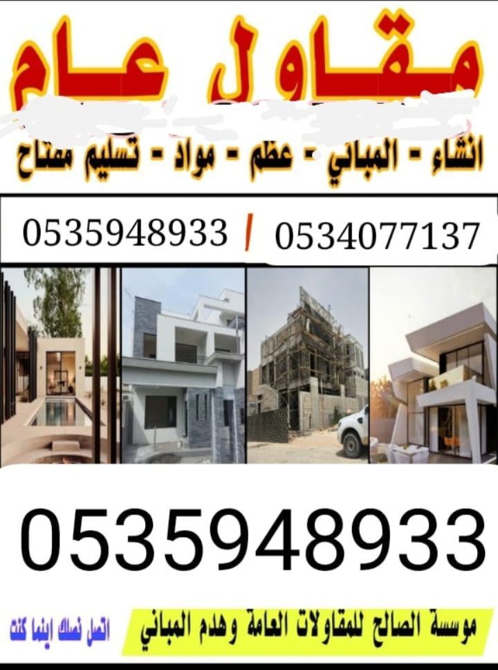 المهندس أبو وليد / للمقاولات العامة نعمل باحترافية ونسعى لتحقيق طموحات وأهداف عملاءنا الرياض وما حولها) اشراف - تنفيذ - بناء عظم - تشطيب - ترميم - تسليم مفتاح - تصميم وتنفيذ ديكور جبس - سباكة - كهرباء بلاط - سيراميك - لياسة - دهان فلل / عمارات / قصور استراحات / هدم وترحيل فنادق / مستشفيات / مباني تجارية مطاعم / كافيهات / مساجد / أسوار / محطات وقود / مغاسل سيارات ملاحق علوية