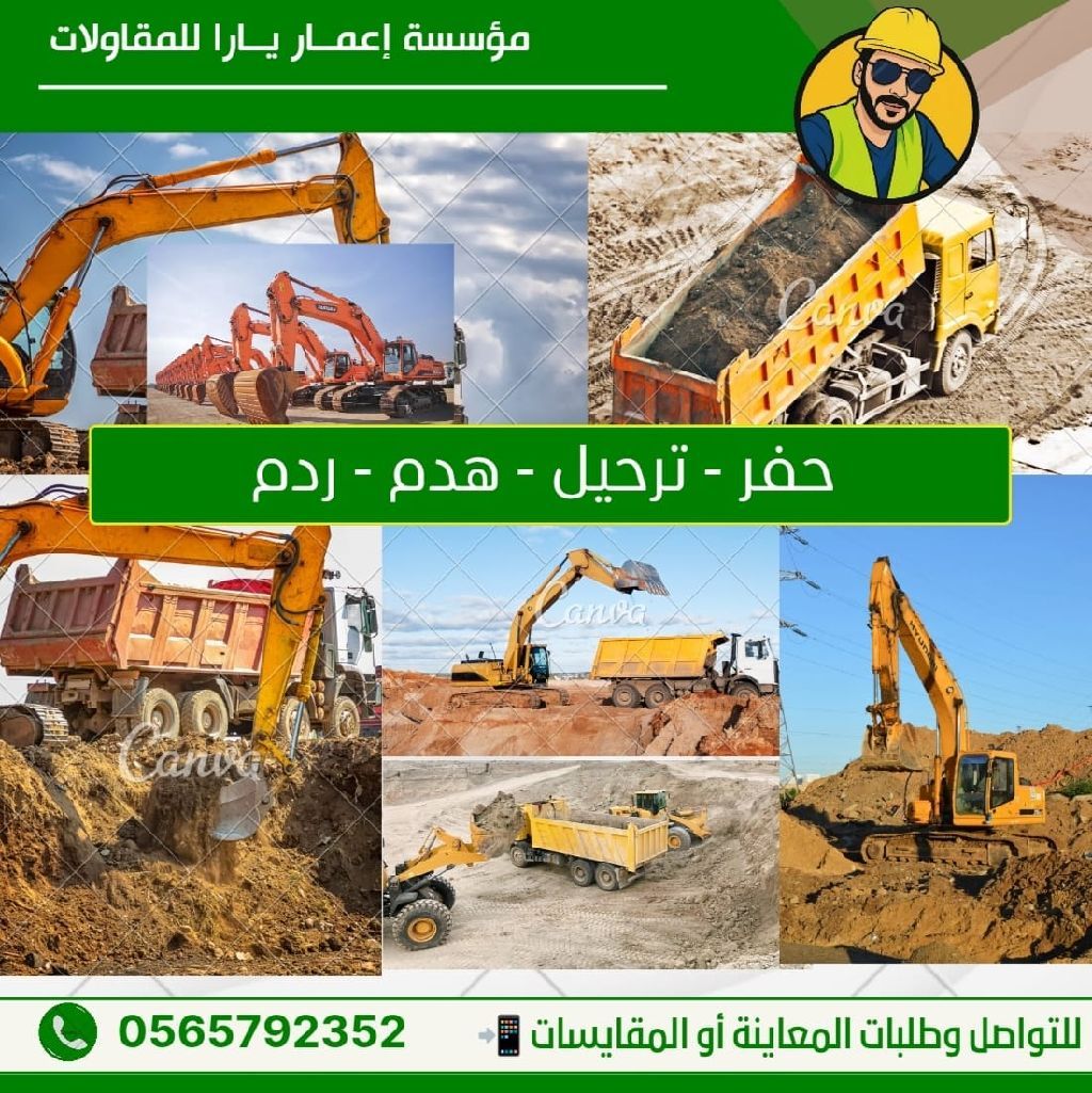 مقاول حفر وردم وترحيل بالمتر وقطاعي قص صخر تسوية ترحيل دفان وصمبيز