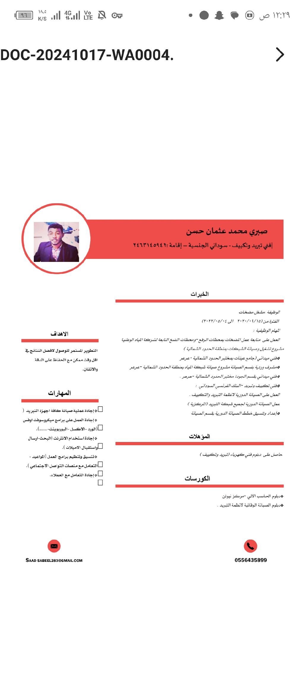 مشغل توربينات محطات ولديه رخصة وإقامة