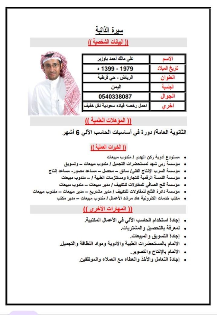 شاب يمني مقيم في الرياض من مواليد السعودية يبحث على عمل في مجال مبيعات وللمقاولات وجلب مشاريع وأي عمل في مجال آخر ملاحظة لا يوجد لدي سيارة لدي رخصة قيادة) العمل في منطقة الرياض) الرجاء خاص التعامل بجديه ومصداقية)