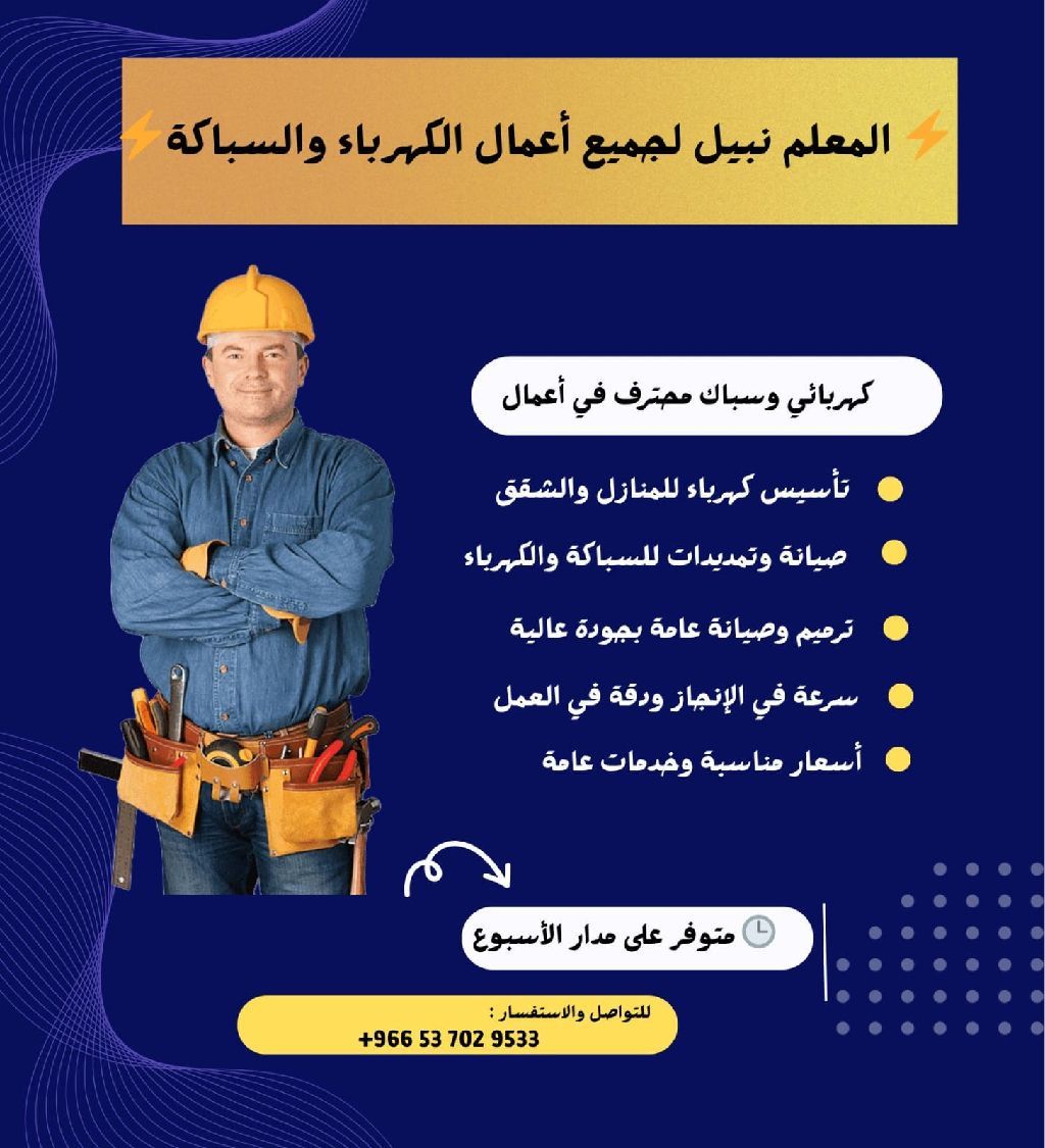 مقاول سباكة وكهرباء مشاريع عامة ومشاريع سكنية خبرة في المجال أكثر من 15 سنة