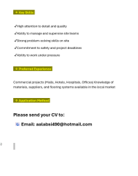 Job Vacancy Announcement A big company is seeking to hire a Terrazzo & Epoxy Flooring Specialist Job Title Epoxy Terrazzo & Cement Terrazzo Specialist/ Site Supervisor Job Description We are looking for a highly experienced professional with strong hands - on expertise in executing Epoxy Terrazzo flooring - Cement Terrazzo flooring - Epoxy flooring systems - And some others experience The candidate