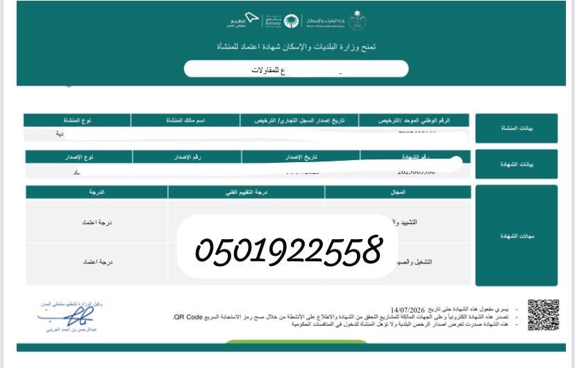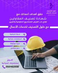 اصدار شهادة تصنيف المقاولين جميع الدرجات (اعتماد) الأولى - الثانية - الثالثة - الرابعة - الخامسة بخبرة أكثر من 15 سنة للتواصل الرياض حي العليا للتواصل