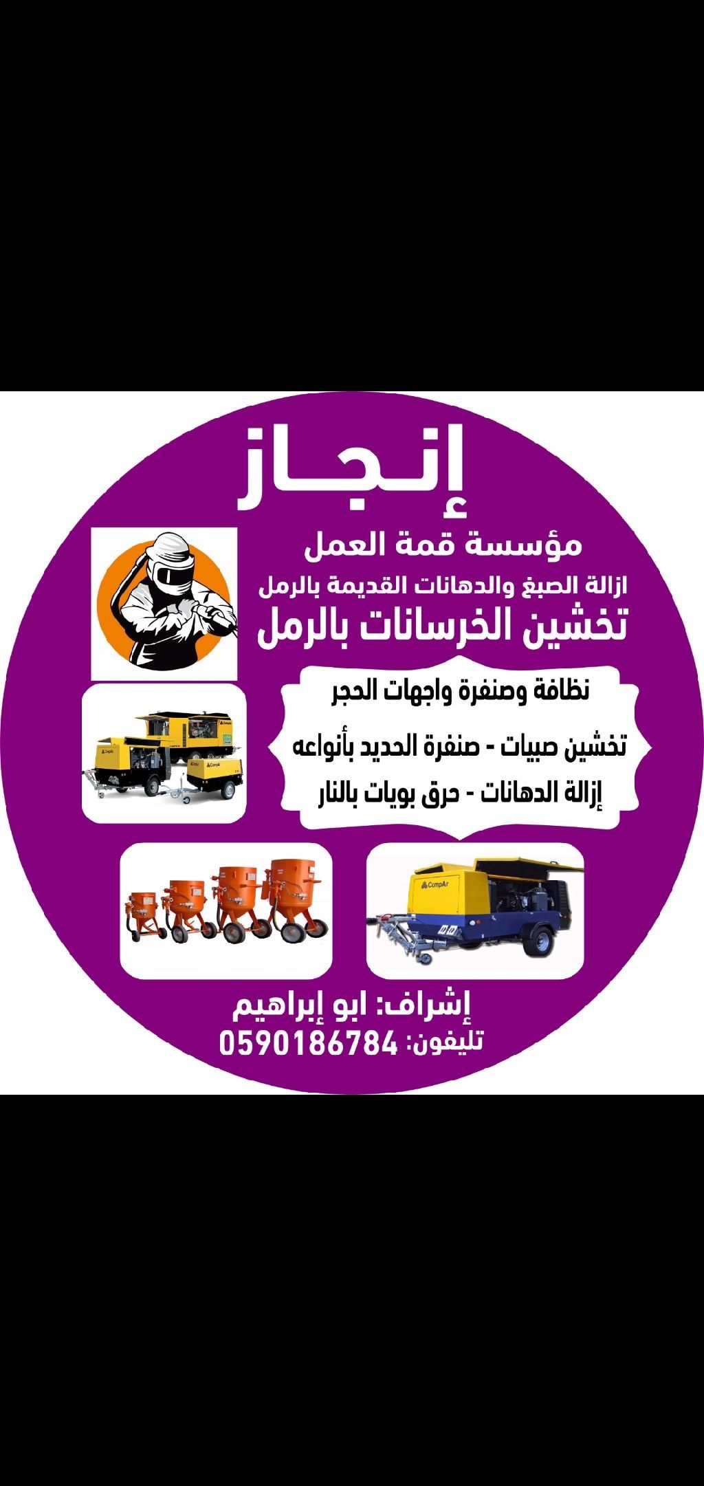 تخشين الخرسانات بالرمل ونظافة واجهات الحجر بالرمل وازالة الدهانات القديمه صنفره الحديد بالرمل