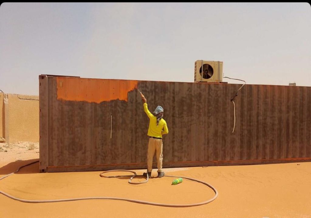 ضرب رمل لتخشين الخرسانة للياسه وتنظيف وجهات الحجر وتنظيف الحديد من الصدأ