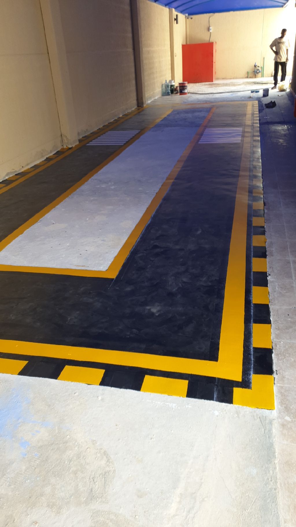 تخطيط مواقف السيارات وايبوكسي الأرضيات وأعمال الدهانات الداخلية والخارجية