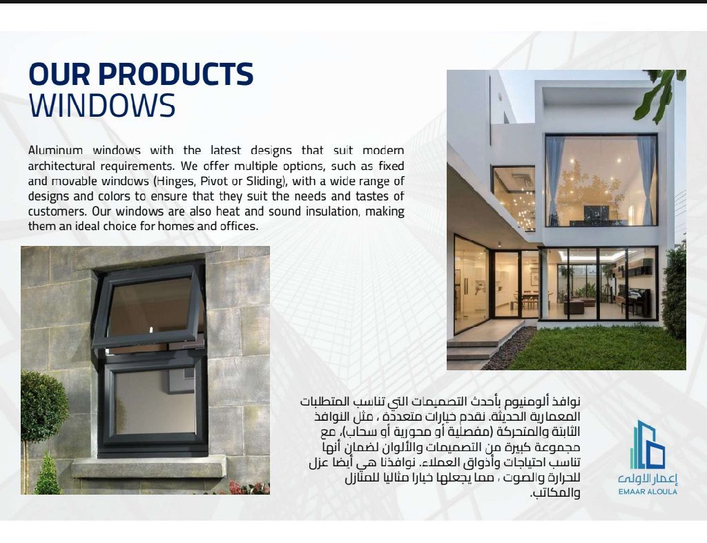 شركة اعمار الأولى الصناعية للألومينيوم هي شركة متخصصة في تصميم وتصنيع منتجات الألومينيوم عالية الجودة، تقدم مجموعة واسعة من المنتجات التي تشمل النوافذ الأبواب، وواجهات المباني، مستفيدين من التقنيات المتطورة والمكائن الحديثة لضمان أعلى معايير الجودة والأداء، هدفنا هو تلبية احتياجات السوق من منتجات الألومينيوم العصرية والفعالة التي تتناسب مع التوجهات المعمارية الحديثة، سواء للمشاريع السكنية