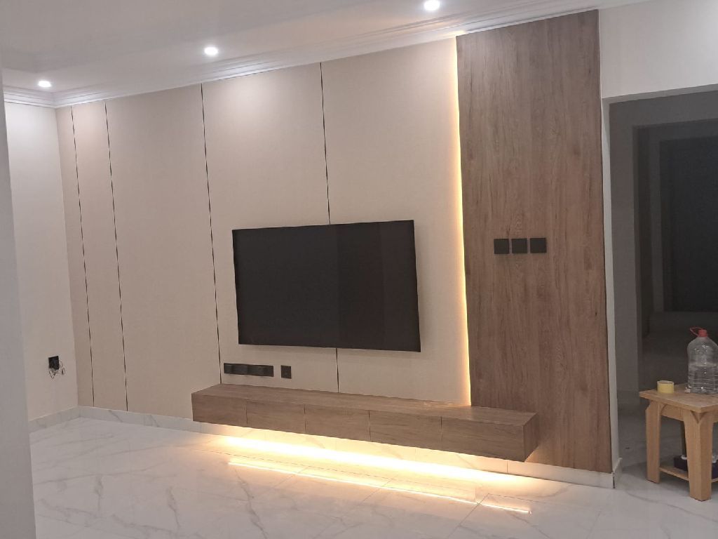 فني ديكور داخلي متخصص في ألواح الجبس، وألواح الخشب المضغوط، وبدائل الحجر، الخشب، وأرضيات الباركيه